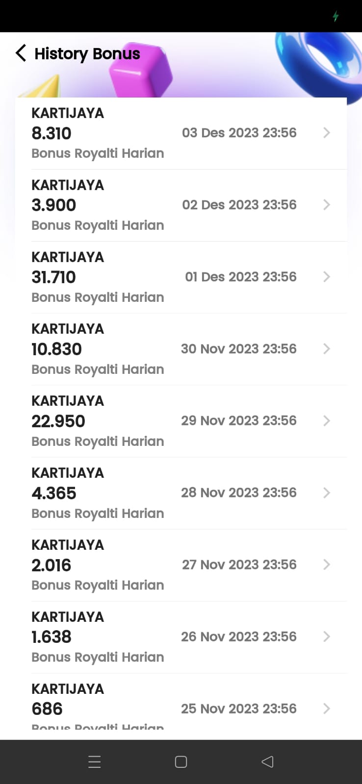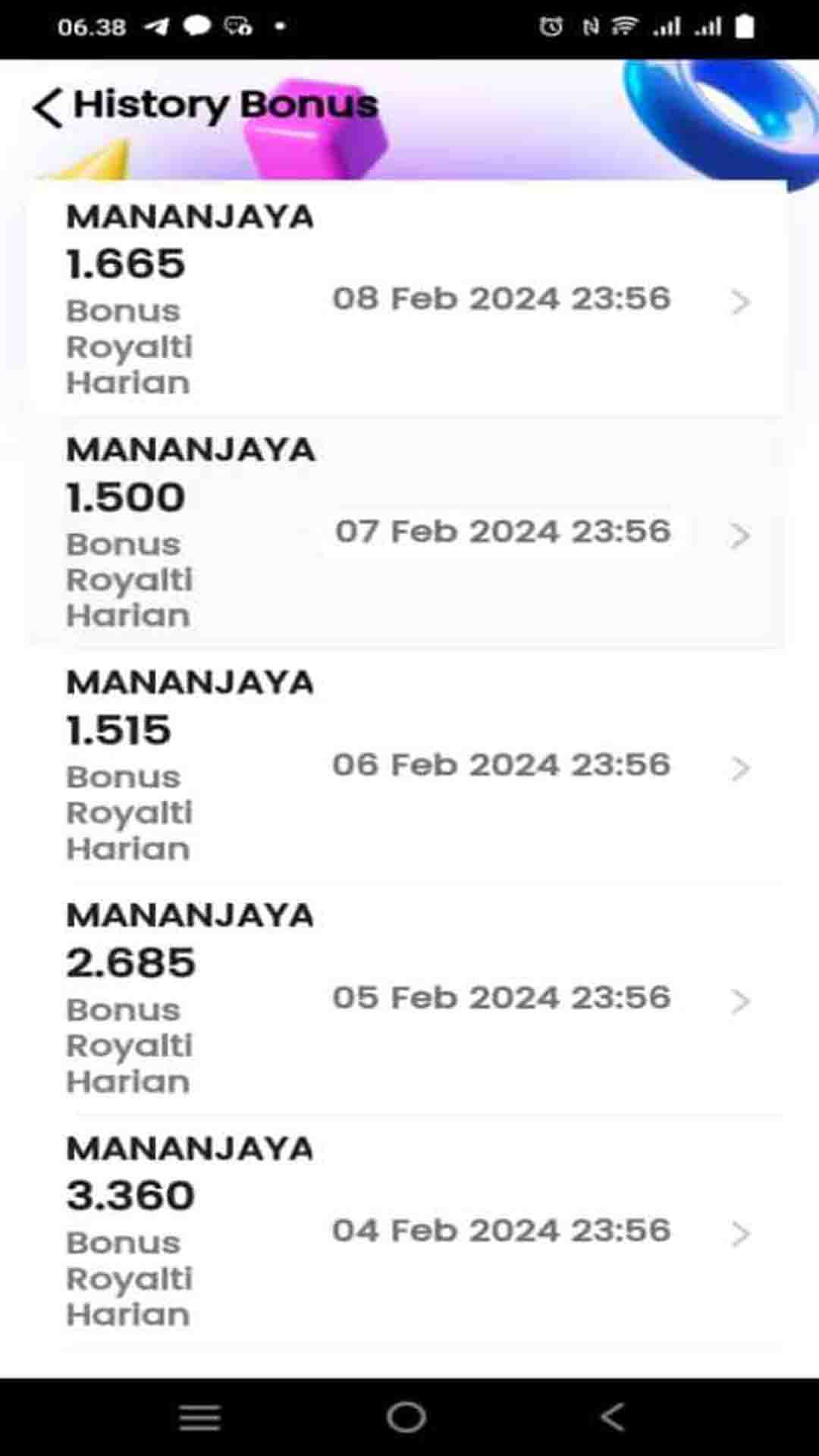 - Bonus Royalty Harian (3X Bronze, Akumulasinya: Rp. 1.500.000)
